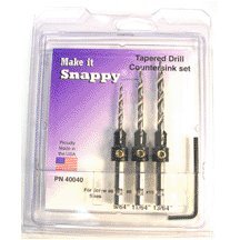 | Snappy tapered bits allow you to get maximum grip from your wood screws. With the added convenience of 1/4" hex drive youll find yourself flying through drilling and driving operations. The addition of a Quick Release Hex Drive Chuck is recommended for optimum speed and efficiency. Sized for #6, #8, and #10 screws. ...Read